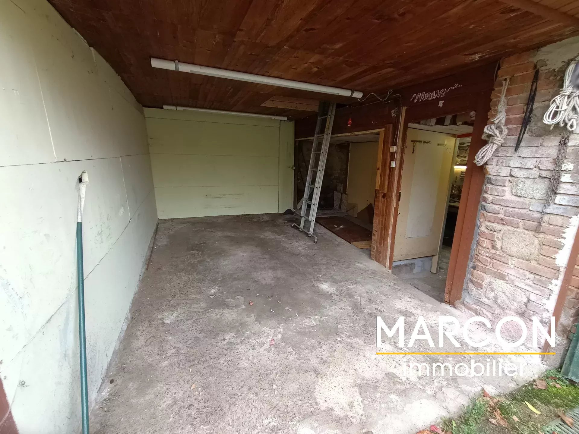 The property also includes two cellars, one with a bread oven, an attached garage with an attic above, a workshop, a room, and a large shed in the garden.