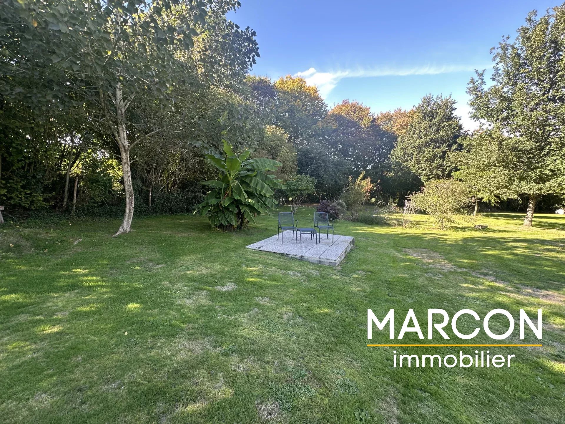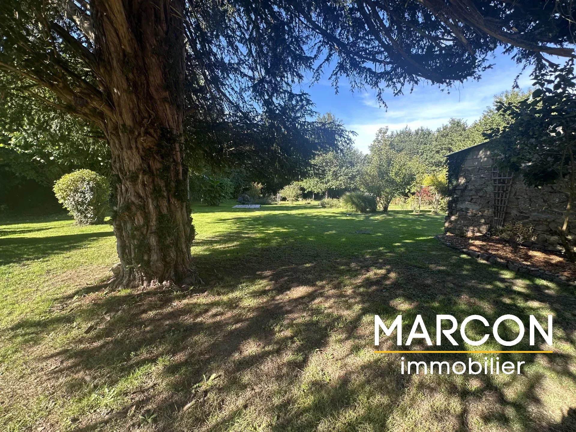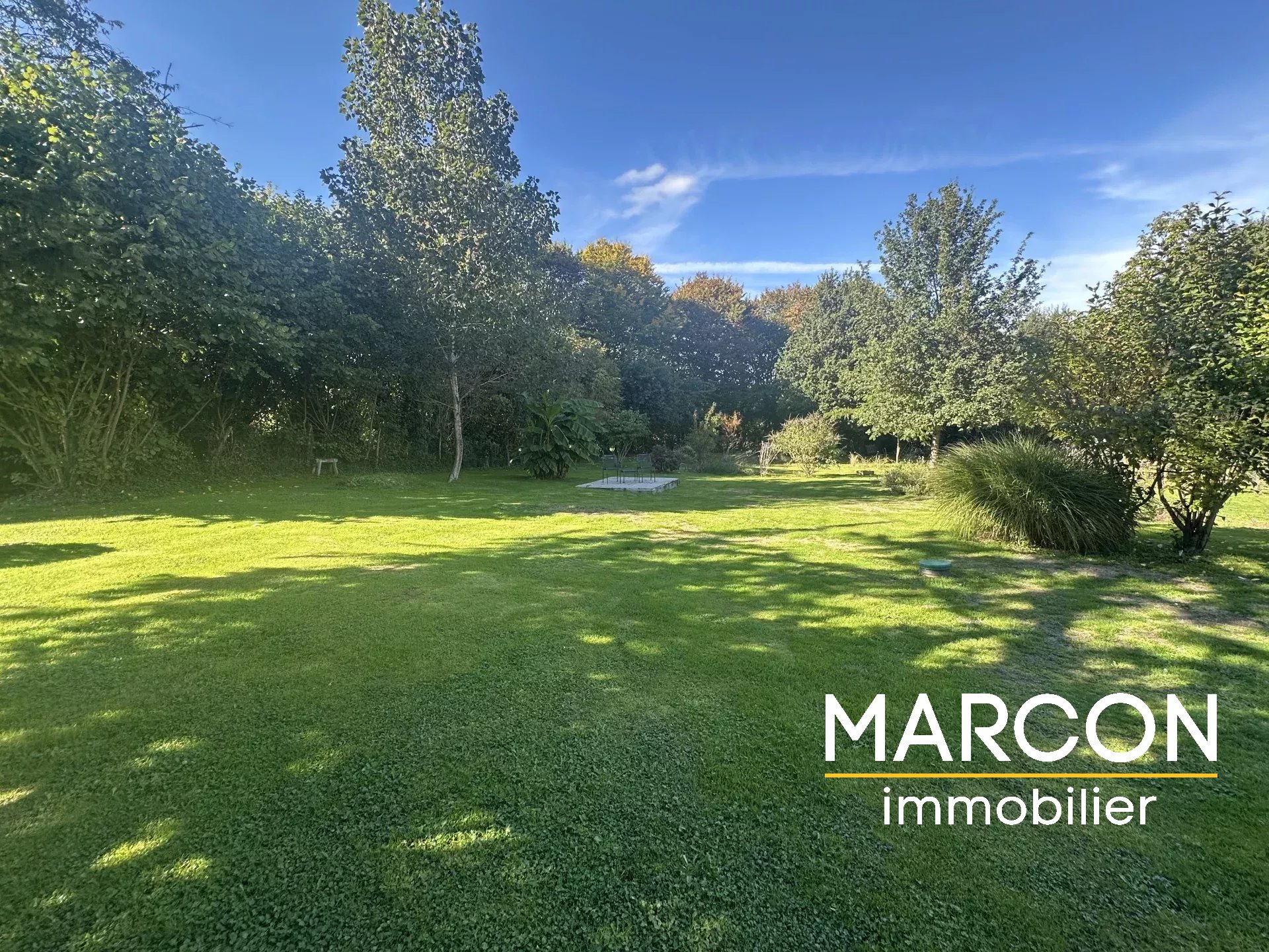 Derrière la maison, il y a un grand parc arboré de 3000 m² environ avec un petit bois.